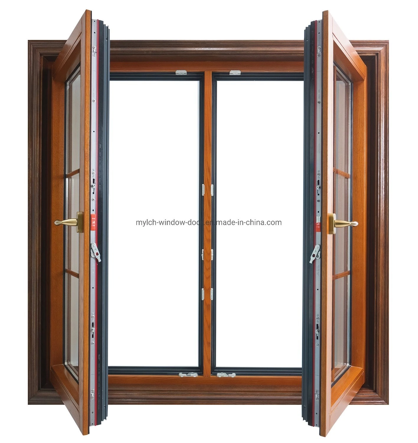 Chinese Manufacturer Customizable America Standard Manual Interal Louver Luxury Rose North Casement Wood Aluminum Window with Crank Operator